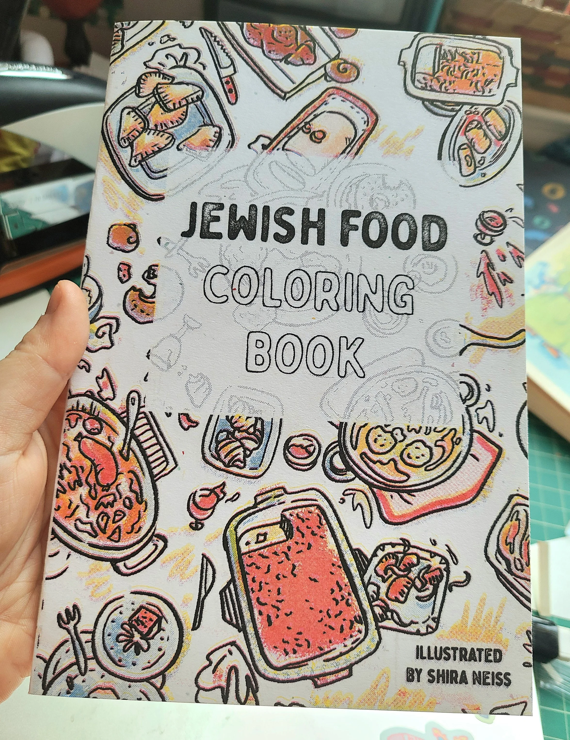 View fullsize View fullsize View fullsize View fullsize View fullsize View fullsize View fullsize Jewish Food Coloring BookZine, 10 pagesRiso Printed, 3 Colors5.5 x 8.5 Inches